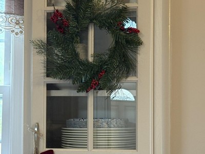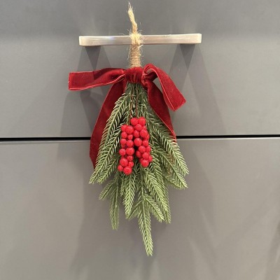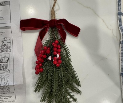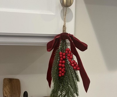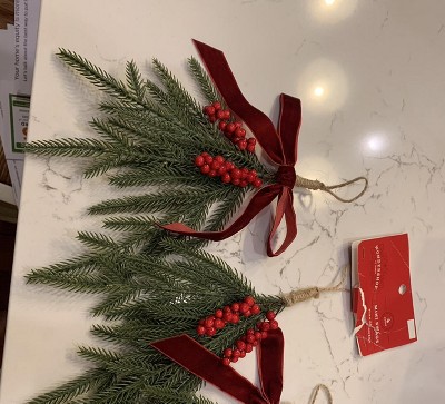 A: Each swag features faux berries and a red velvet bow for added charm.