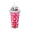 Celebrate the holiday season in style with this red 16 oz double wall water bottle, featuring an all-over print of Santa and a fully functional snow globe lid. Perfect for keeping your drinks hot or cold, the double-wall construction ensures insulation. Made from high-quality glass, this bottle is as durable as it is festive. Hand wash only to preserve the design, making it a delightful addition to your collection.