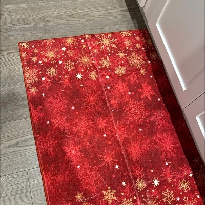 Christmas Snowflake Area Rug, Red 5x7 Rug Washable Non Slip for Living Room Xmas Decor Low Pile Throw Rug Carpet