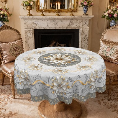 Love this table cloth It looks great on the table. Easy to keep clean. Most spills just wipe up. It has a silky feel to it. The pkg included not slip Velcro tabs. That’s a game changer. Wish I could find more like this one