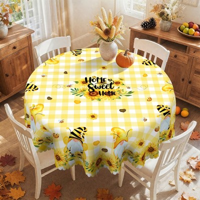Christmas Tablecloth with Santa, Reindeer and Snowman Designs, Dustproof Dining Table Cover for Festive Holiday Decor yellow 60 inch