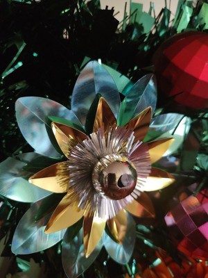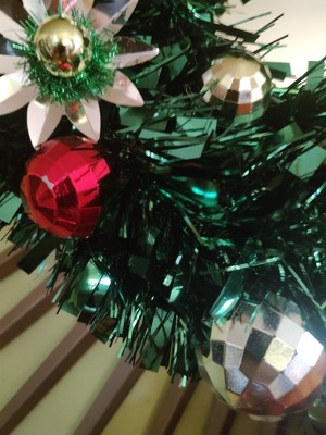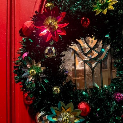 Make your holiday decor stand out from the rest with this Christmas Tinsel Wreath from Wondershop™. This Christmas wreath is made from green tinsel beautifully arranged in a circular shape. It is adorned with sparkly flowers, balls and other ornaments, which adds a touch of bling to your decor. Boasting a hanging loop, this Christmas wreath is ideal for hanging on windows, the front door or above the mantel for festive flair.