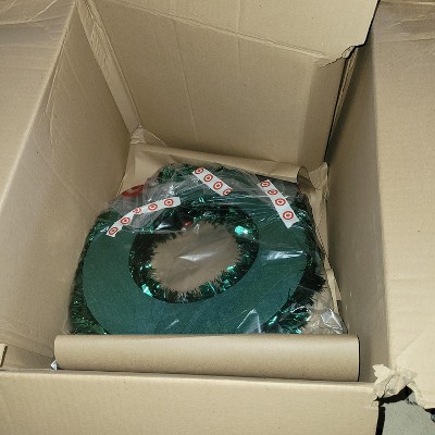 The wreath itself, gorgeous. The Target shipping is AWFUL. I'm surprised the wreath made it without damage. Once you see the pictures you will understand. The box was 3x the size needed without any filler and crushed due to this choice. I didn't need anything but my own hands to open the box or to break it down afterwards. The reinforced tape was broken in so many places the reinforcement was the only thing stopping it from being completely opened.