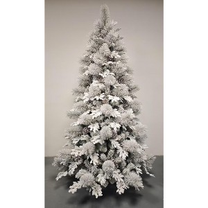 - This Christmas tree blends PE pine needles and PVC for a lifelike look—PE brings soft, natural fullness while PVC ensures long-term durability. It comes with built-in auto-lights to skip tangled stringing, plus 25 delicate pine needle-thin leaf decors that add subtle detail, and a light flocking that mimics fresh snow, making it ready to glow once plugged in.
