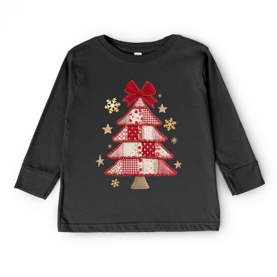 Christmas Tree Red Patchwork Print - Youth Short Sleeve Graphic T-Shirt - 1 of 4