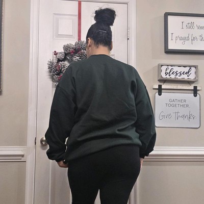 [This review was collected as part of a promotion.] This Sweatshirt is so cute and very festive. The vinyl is like a raised textured vinyl which is cool. I really like the shade of green. I got a 2xl and honestly its a little big but I really like it like that. For reference im 5'7 and 215lbs. I could have went with an XL for a tighter fit but this looks better in my opinion. The sweatshirt is also really soft and comfortable. Overall I recommend this sweatshirt.