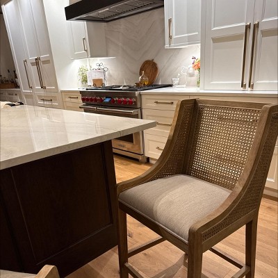 Comfortable chair and easy to assemble. Looks great, adds warmth to a white/neutral kitchen.