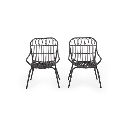 Christopher Knight Home 2pc Byson Wicker Outdoor Patio Accent Chairs Light Brown/Black