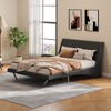 Transform your bedroom with the modern upholstered bed frame, a perfect fusion of innovation and comfort. Crafted with premium PU leather, this platform bed frame delivers a sleek, contemporary look while ensuring durability and easy maintenance. Its wave-like curve design and trapezoidal legs create a floating, futuristic appearance that elevates any bedroom decor. The sturdy slat system eliminates the need for a box spring, offering strong mattress support and noise-free stability. With a generous 11.2-inch clearance, it allows robotic vacuums and sweepers to glide underneath, simplifying daily cleaning. Engineered for quiet sleep and easy assembly, this modern PU leather bed frame combines stylish design with practical convenience.