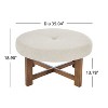 Blending modern elegance with functional design, this round ottoman serves as both a stylish centerpiece and a practical addition to your living room. Upholstered in soft, durable fabric and supported by a solid wood cross base, it offers exceptional stability and visual appeal. Whether used as a coffee table, extra seat, or footrest, its spacious surface and warm finish make it a versatile piece that complements any contemporary or transitional décor. Easy to assemble, this ottoman delivers both comfort and sophistication to elevate your everyday living space.