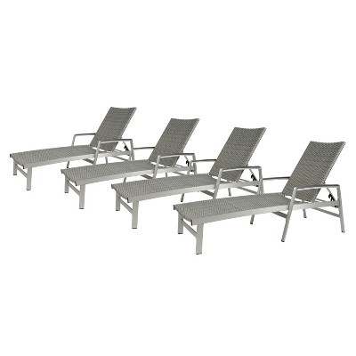 Christopher Knight Home Alfred Outdoor Acacia Wood Adjustable Chaise Lounge with 3-Fold Water-Resistant Cushion (Set of 4), Dark Gray