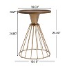 Elevate your space with this vintage-inspired end table that combines artful design with practical use. Its 18" circular pine wood top sits above a hollow iron base, creating a unique floating effect. A hand-distressed finish brings out the wood’s texture, while the antique gold frame adds a touch of glamour. The sunken tabletop helps secure items and adds depth to its visual appeal. With no assembly required, it’s a ready-made statement piece for any modern, retro, or eclectic interior.