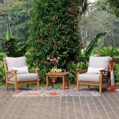Christopher Knight Home Bennett Rustic 3 Piece Patio Acacia Wood Club Chairs with Round Accent Table