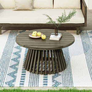 - UNIQUE DESIGN: This coffee table features a round top and a distinctive base made of multiple wooden strips, creating a unique shape while providing excellent stability and support.