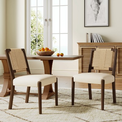 Christopher Knight Home Boyle Mid Century Fabric Upholstered Dining Chairs with Back Set of 2, Beige/Walnut