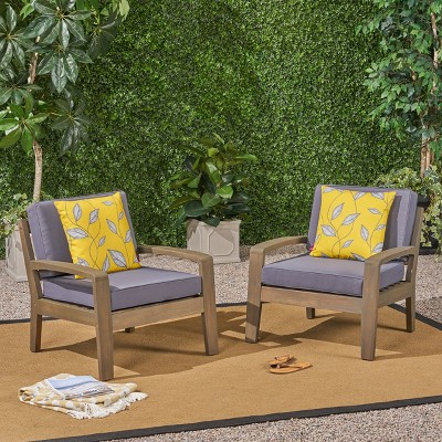 Christopher Knight Home Brava Outdoor Acacia Wood Club Chairs with Water Resistant Cushions (Set of 2), Dark Gray/Gray