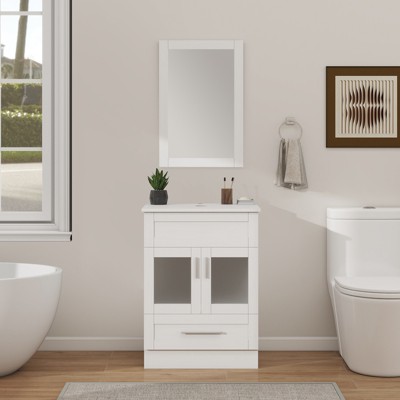 Smart Storage and Easy Assembly: With a single door and a spacious drawer, the vanity efficiently organizes your bathroom essentials even in limited spaces. Easy-to-follow assembly instructions and a freestanding design allow for quick setup and secure installation without the need for complicated mounting.