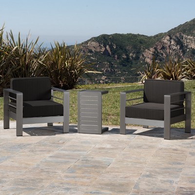 Christopher Knight Home Cape Coral Outdoor Mesh and Aluminum 3 Piece Chaise Lounge Chat Set