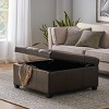 - DIMENSIONS: Choose an accessory that is the perfect size for you and your furniture. This storage ottoman is 35.00” W x 35.00” D x 18.50” H. You will love how much your space can transform with the simple addition of this charming ottoman.