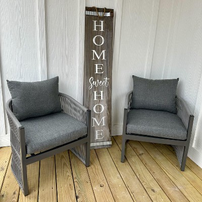 It's frigid here today, but I can't wait to spruce up this little front porch in a few weeks. The chairs are awesome! If for no other reason, they come fully assembled. Pull them out of the boxes, plastic off the pillows, unwrap the front legs, done and done. My 6'4 husband may say they're a little short, but I love them! Very comfy!