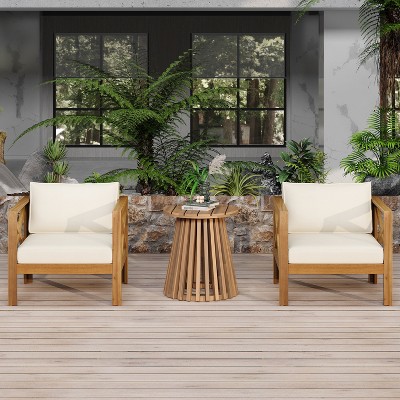 Christopher Knight Home Cedric Transitional 3 Piece Patio Acacia Wood Club Chairs with Foldable Accent Table