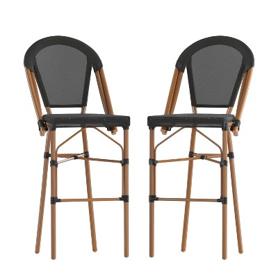 Christopher Knight Home Dafydd Outdoor 30" Iron and Rattan Barstools with Scallop-shaped Backrest Set of 2