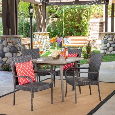 Christopher Knight Home Damas Outdoor Acacia Wood and Wicker 5 Piece Dining Set with Cushion