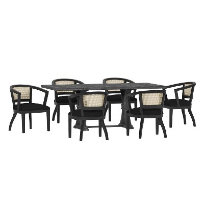 Elevate your dining area with a timeless look that will leave your guests in awe. With its beautifully upholstered chairs, iconic round backrests, a trestle base, and stunning French country charm, this seven-piece dining set is a unique and functional way to add sophisticated grace to your dining experience. Complete with seating for six people and an expandable tabletop, this set offers your home something a little out of the ordinary while also remaining true to its elegant, old-fashioned roots.