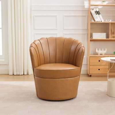This modern swivel barrel chair elevates any living space with its elegant barrel-shaped design, offering a comfortably wrapped seating experience. It features a smooth 360-degree swivel base, allowing effortless rotation in any direction. Upholstered with soft, cozy plush fabric, the chair provides a warm and inviting feel, perfect for relaxation and leisure activities. The durable bentwood ring base delivers superior strength, crack resistance, and long-lasting stability for everyday use. With its spacious seating surface and contemporary silhouette, this swivel chair combines ergonomic comfort with modern design, making it a versatile and stylish addition to any home environment.