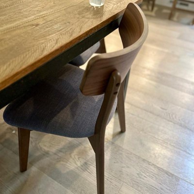 [This review was collected as part of a promotion.] I was shocked at how nice these chairs really are. My home has many warm toned woods and these chairs are perfect. The stark color difference between the wood and the seating pads really make these chairs statement pieces. I think they are wonderful for at a desk or at a cafe style table in your home. I think for the price they are really nice and sturdy. We have these at our dining table and have really enjoyed the comfort the curved back provides whilst seated for a meal. I received an incentive to write this review.