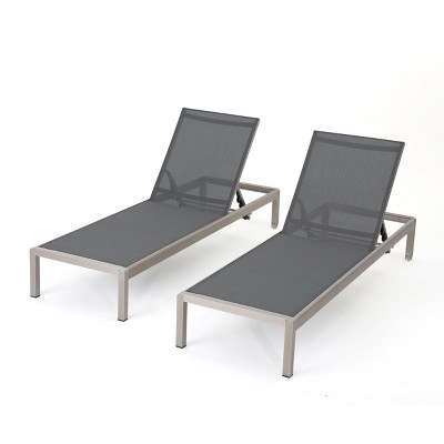Christopher Knight Home Ian Acacia Wood Armless Adjustable Chaise Lounge with 4" Thick Cushion Set of 2, Dark Gray/Gray