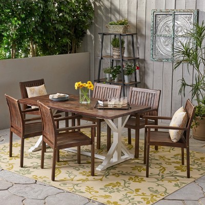 Christopher Knight Home Jaclyn 7 Pieces Outdoor Rustic Rattan, Metal and Acacia Wood Dining Set, Gray/Teak