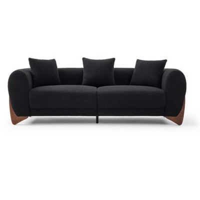 Christopher Knight Home Jose 82 " Rubberwood Boucle Upholstered 3 Seater Curved Sofa with Pillows Set of 2 Beige