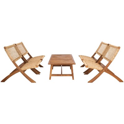 Christopher Knight Home Krizzix Boho 3 Piece Outdoor Acacia Wood Woven Rope Seating Set with Cushions, Beige