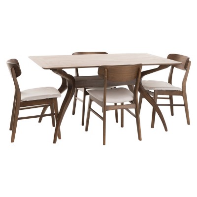 Christopher Knight Home Laila 5 Piece Mid-Century Modern Rubberwood Dining Set with Cushion