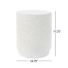 This outdoor side table is crafted from high-quality concrete with a chic terrazzo white finish, featuring a unique speckle pattern that adds elegance to its cylindrical design. It is both weather-resistant and durable, perfect for outdoor use. Its contemporary design complements various decor styles, offering a sleek and sophisticated touch. Fully assembled and ready to use out of the box, this table combines both function and modern aesthetics for your outdoor spaces.