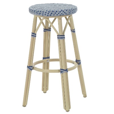 Christopher Knight Home Louise Outdoor Boho Textilene Rope and Aluminum 24.4" Bar Stools with Cushion Set of 2, Rounded Backrest