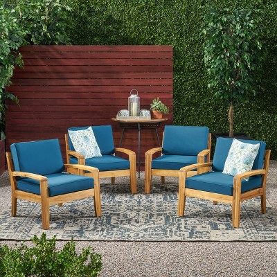 Christopher Knight Home Maribel Outdoor Transitional Acacia Wood Club Chair with Cushions (Set of 2), Blue/Teak