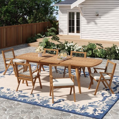 Christopher Knight Home Mason Outdoor Acacia Wood and Wicker 7 Piece Dining Set with Cushions