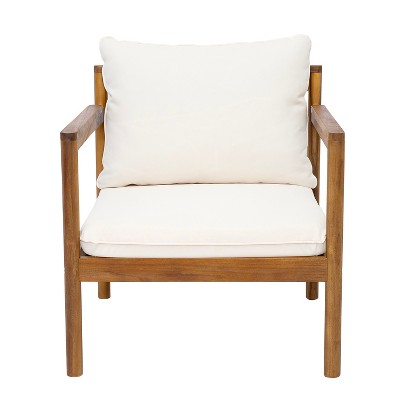 Christopher Knight Home Negley Outdoor Acacia Wood and Rope Weave Club Chair with Water Resistant Cushion, Teak/Cream
