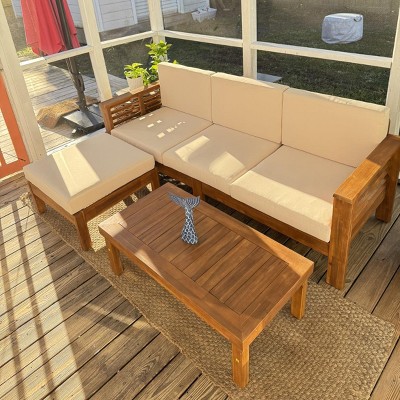 Christopher Knight Home Nolan Outdoor Shutter-styled Paneling Acacia Wood Seating Set with Cushions, Brown/Beige