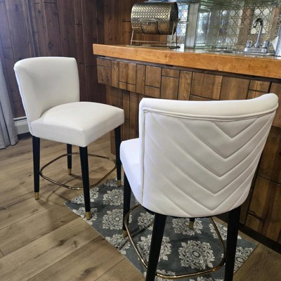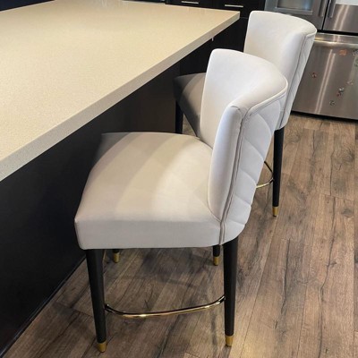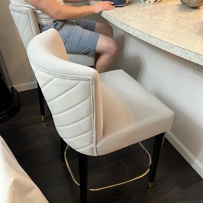 [This review was collected as part of a promotion.] These Christopher Knight Nordelle Modern Upholstered Rubberwood Barstools are absolutely gorgeous. The barstools match my living room asthetic of a mixture of white and cream colors. The barstools are large and can accommodate individuals of all sizes. The fabric is a nice velvet finish which looks high end. I love the blend of a black and gold finish at the bottom of the chairs. I like that the chairs sit up high. The back of the chair provides a strong support. I received an incentive to write this review.