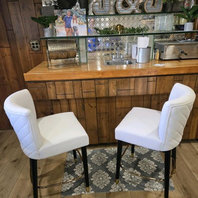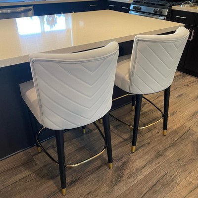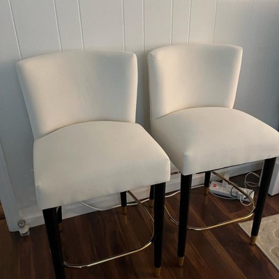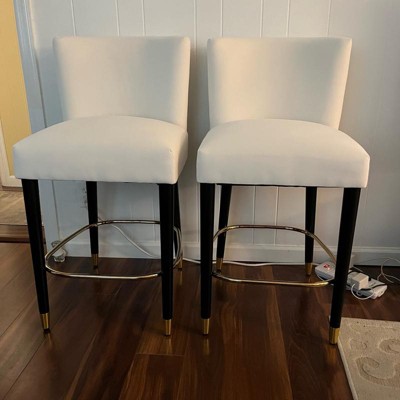 [This review was collected as part of a promotion.] I ordered this pair of stools for my bar that I am fixing up in the basement. I was really impressed with how sleek these stools look once they were set up. I love the gold accents on the black legs. The material is soft to the touch and the seat is a great size, although it is a little hard, but I think it will break in overtime. The downside was definitely the assembly. The pre-drilled holes didn’t quite line up the way they should have, which made getting the legs attached way harder than it should’ve been. It took a lot of patience to finally get them together. In the end, I’d say the stools are really nice and they bring a cool vibe to the room with the balanced colors of white, black and gold. Hopefully the whole alignment of the holes was just a fluke with my stool set and they were not all manufactured incorrectly. I received an incentive to write this review.