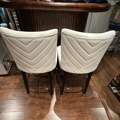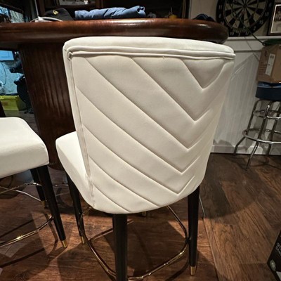 [This review was collected as part of a promotion.] I was looking for some bar stools for my daughter’s kitchen, she wanted a modern 90’s revival aesthetic. These are definitely chic and on trend- the brass detailing on lack legs and the chevron upholstery is so cool! The assembly instructions were a bit confusing at times, so they could have been better. Huge plus that the entire seating portion came already assembled. I do also feel like the padding is a bit “noisy” when you sit down, I’m not so sure it’s super high quality filling. But overall my daughter is very happy with the look of these! I received an incentive to write this review.