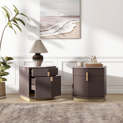 - MODERN STYLE: Featuring clean lines, geometric tabletop, and vertical striped panels, this nightstand brings a sophisticated modern style to any room, perfectly blending aesthetic appeal with timeless elegance for contemporary interiors.