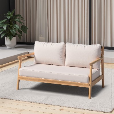 Christopher Knight Home Osborn 48" Rustic Outdoor Slat Design Acacia Wood Loveseat with Cushion,Teak/Beige