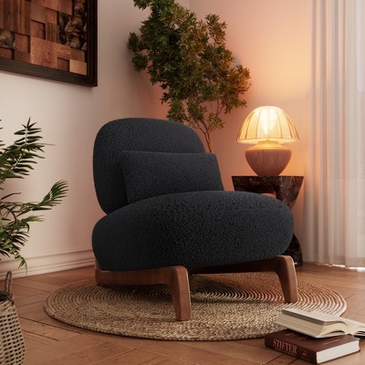 Upgrade your home with this modern upholstered boucle lounge chair, designed for both style and comfort. Featuring a plush rolled backrest and soft boucle fabric, it offers a cozy, inviting feel. The solid wood frame ensures durability, while the natural wood finish adds a touch of warmth and elegance. Perfect for lounging in the living room, bedroom, or reading nook.