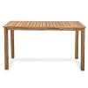 Add style and functionality to your outdoor space with this rectangular acacia wood bar table. Designed with a minimalistic silhouette and slatted tabletop, it brings a clean, natural look to any setting. Crafted from weather-resistant acacia wood in a light teak finish, it’s perfect for patios or balconies. Its durable frame resists wear, and assembly is simple with all tools included.