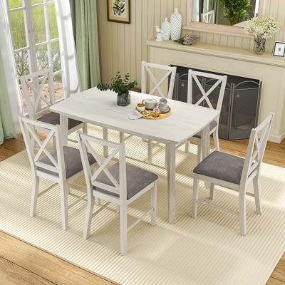 - WEATHERED FINISH: This dining set is complemented with a gorgeous weathered finish for a vintage look. This emphasizes the French inspiration, bringing an elegant touch to any space.