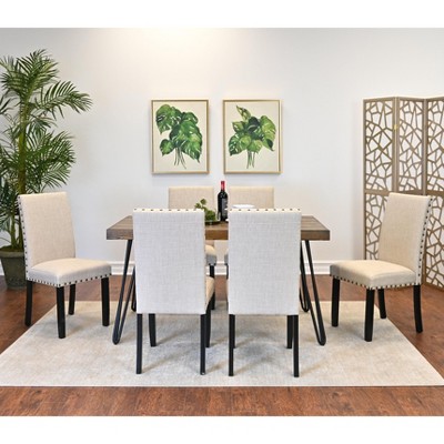 Christopher Knight Home Phinnaeus 7-Piece Dining Set with Extendable Table and Upholstered Chairs, Dark Blue Stripes